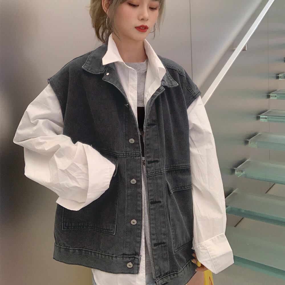 カジュアルトップス デニムジレ 重ね着 ライトアウター韓国
