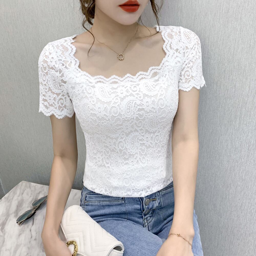繊細なレース素材を使用して大人っぽくフェミニンに仕上げた半袖ブラウス