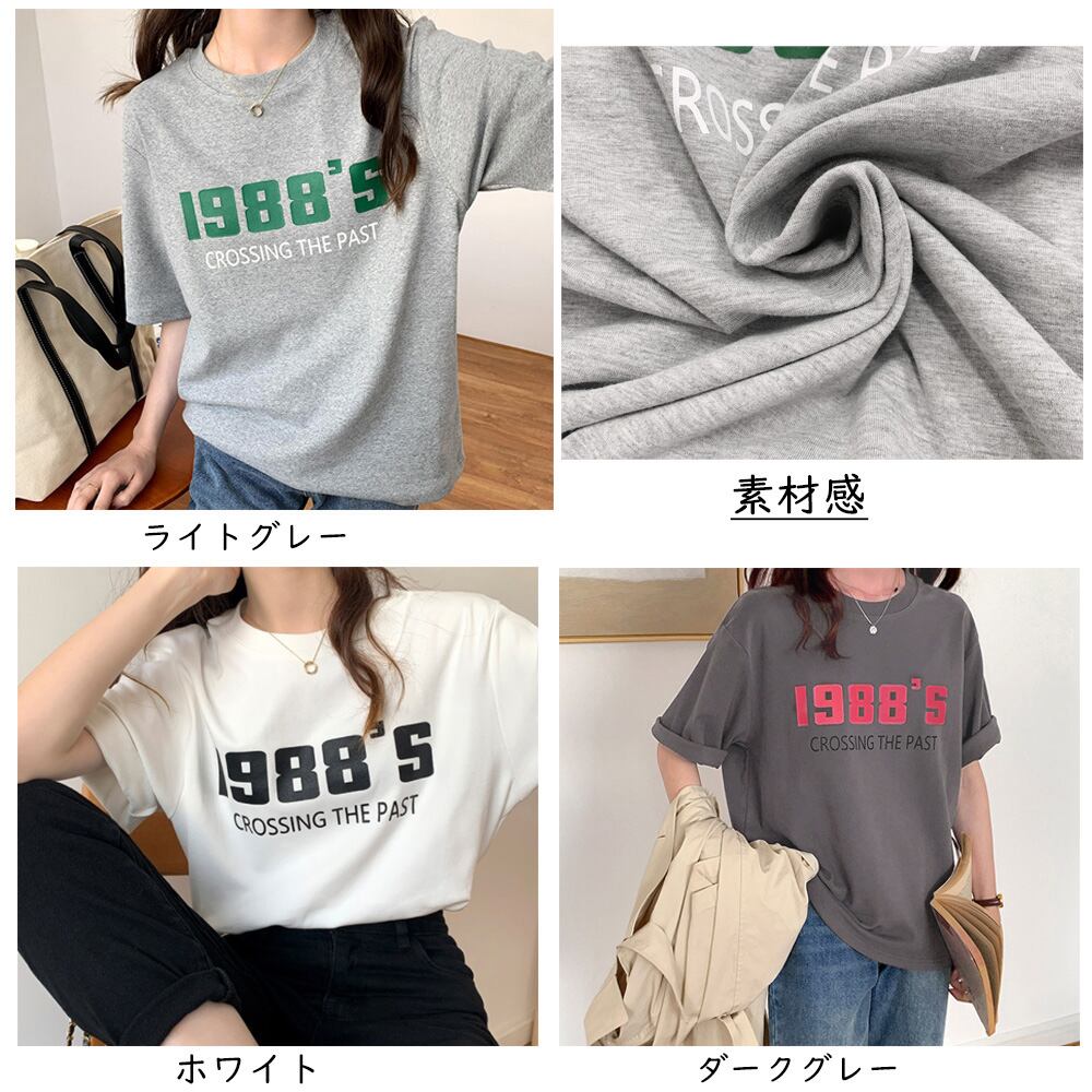 レディース 韓国 ラウンドネック カットソー 英字ロゴT 着やせ プルオーバー 大人女性 カジュアル トップス Tシャツ