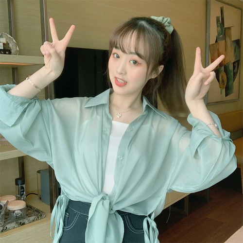 【日本倉庫即納】 シアーカーディガン シャツブラウス