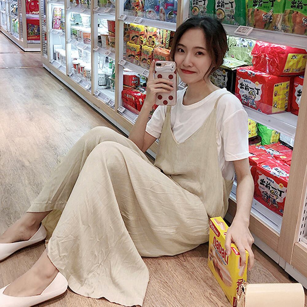綿麻風 大人可愛い オーバーオール 韓国 おしゃれ ワイドパンツ ロング丈 マキシ スカーチョ ガウチョ