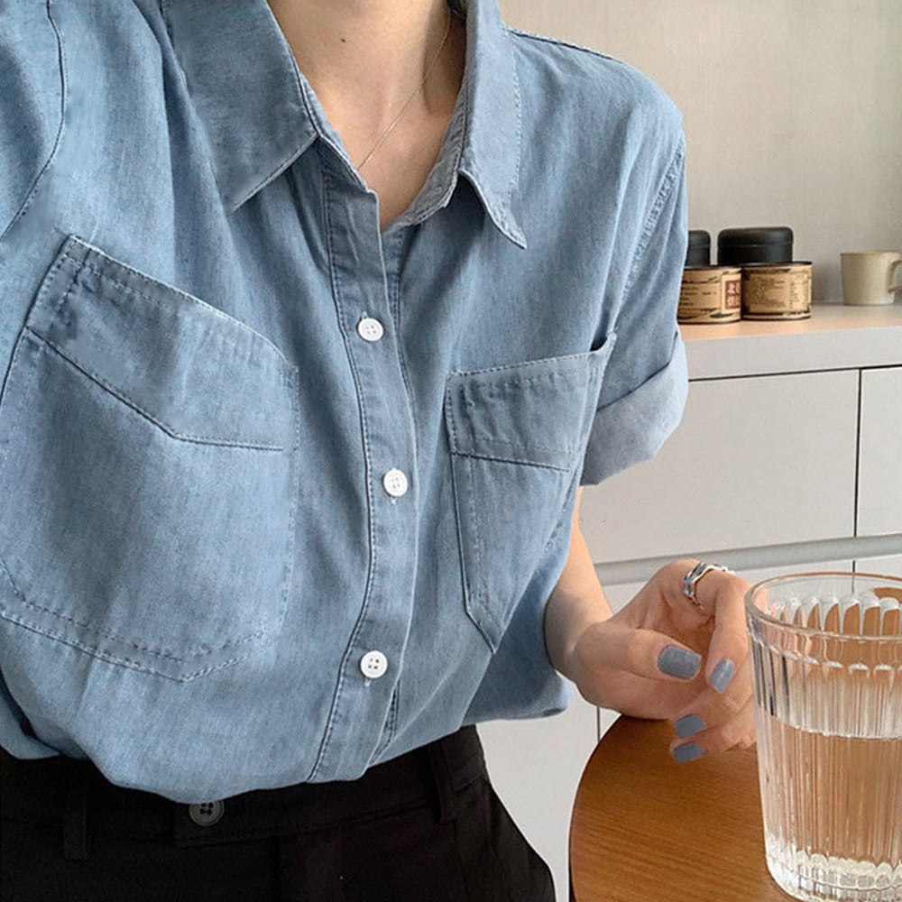 【日本倉庫即納】 デニム風シャツ レディース 半袖韓国風