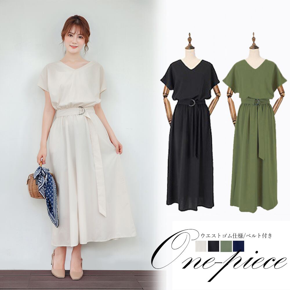 ウエストゴム仕様でウエストのメリハリを出す、大人シンプルなベルト付きワンピースです