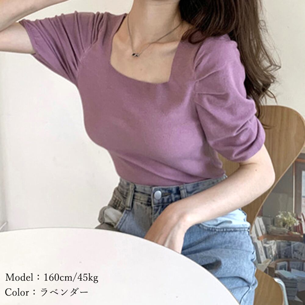 【日本倉庫即納】 パフスリーブ ニットトップス