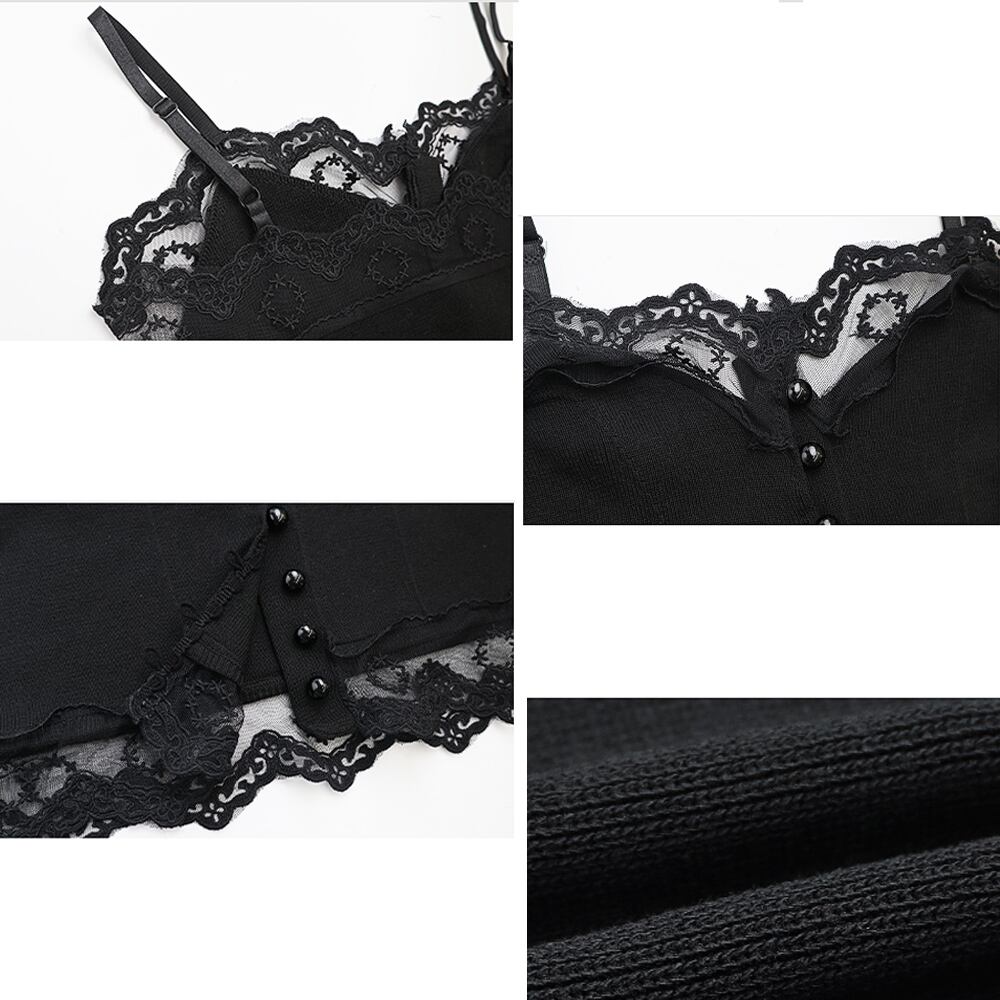 キャミソール トップス ショート丈 インナー ボダン レース 大人可愛い 肌着