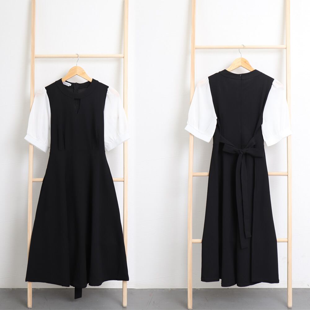 【日本倉庫即納】 ワンピース 袖切り替えワンピ レトロ風