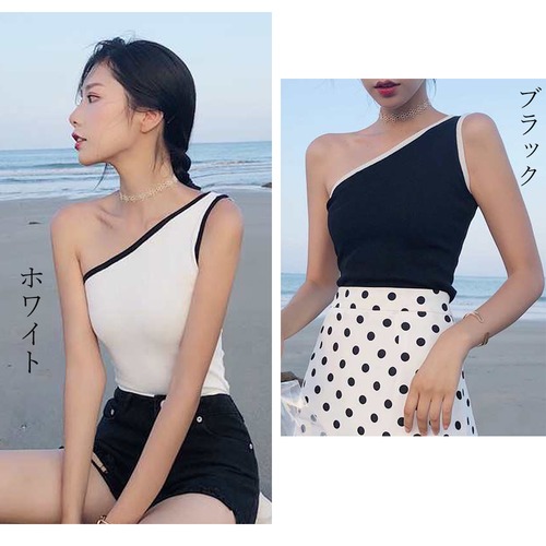 【日本倉庫即納】 タンクトップ ワンショルダー キャミ