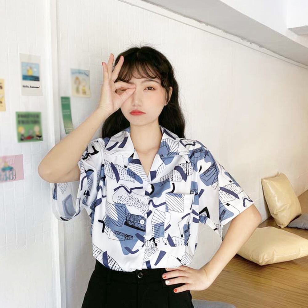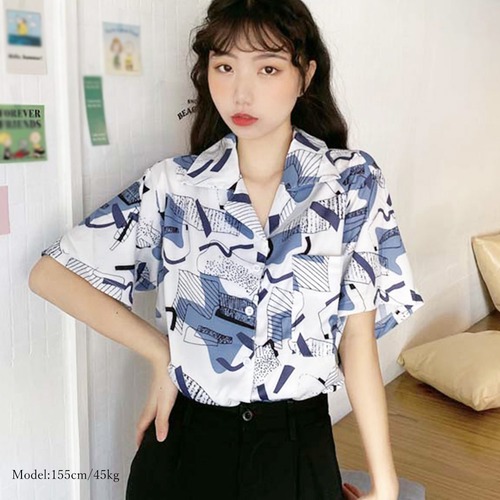 【日本倉庫即納】 半袖シャツ プリント柄 レディース 夏