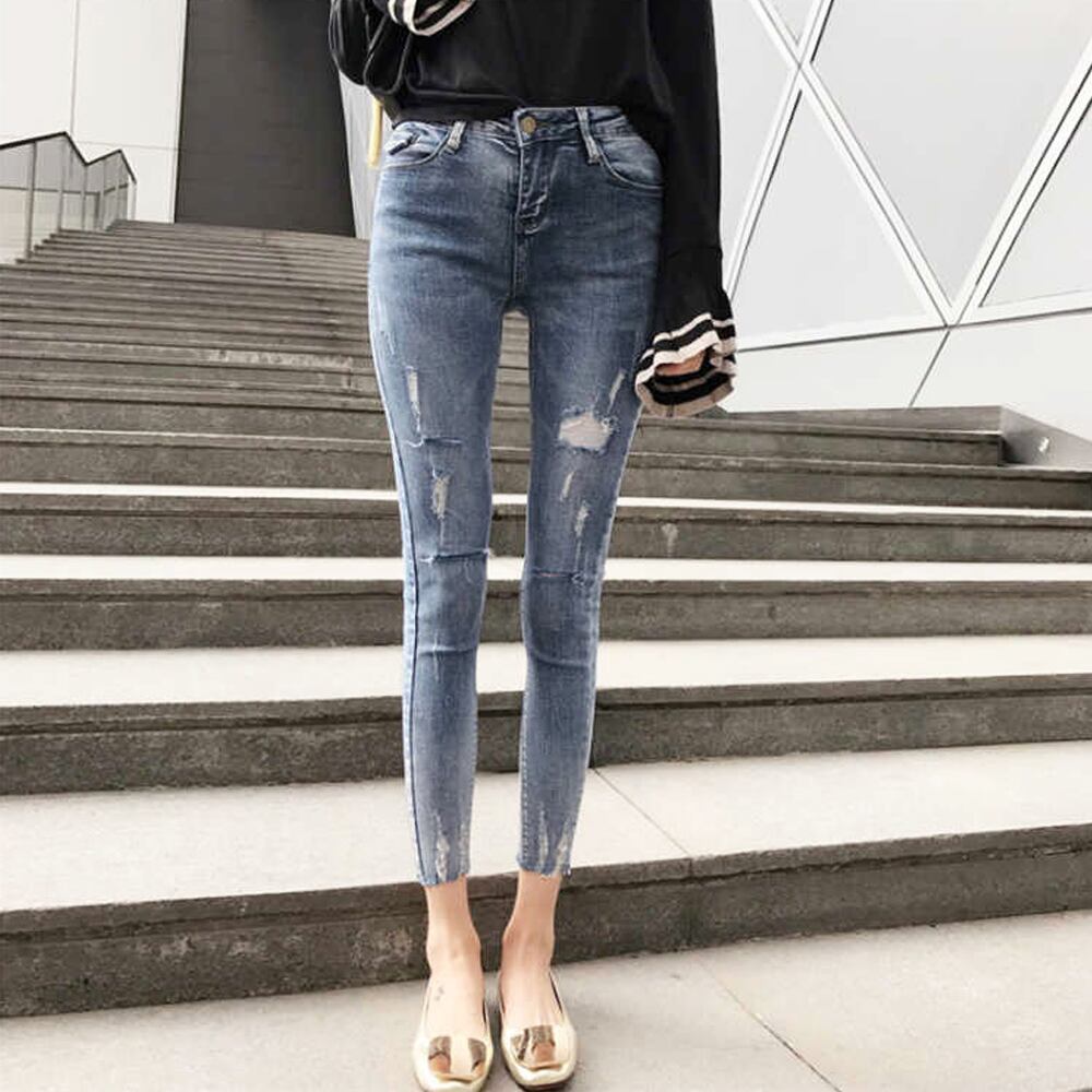 【日本倉庫即納】 ダメージジーンズデニムスキニーパンツ