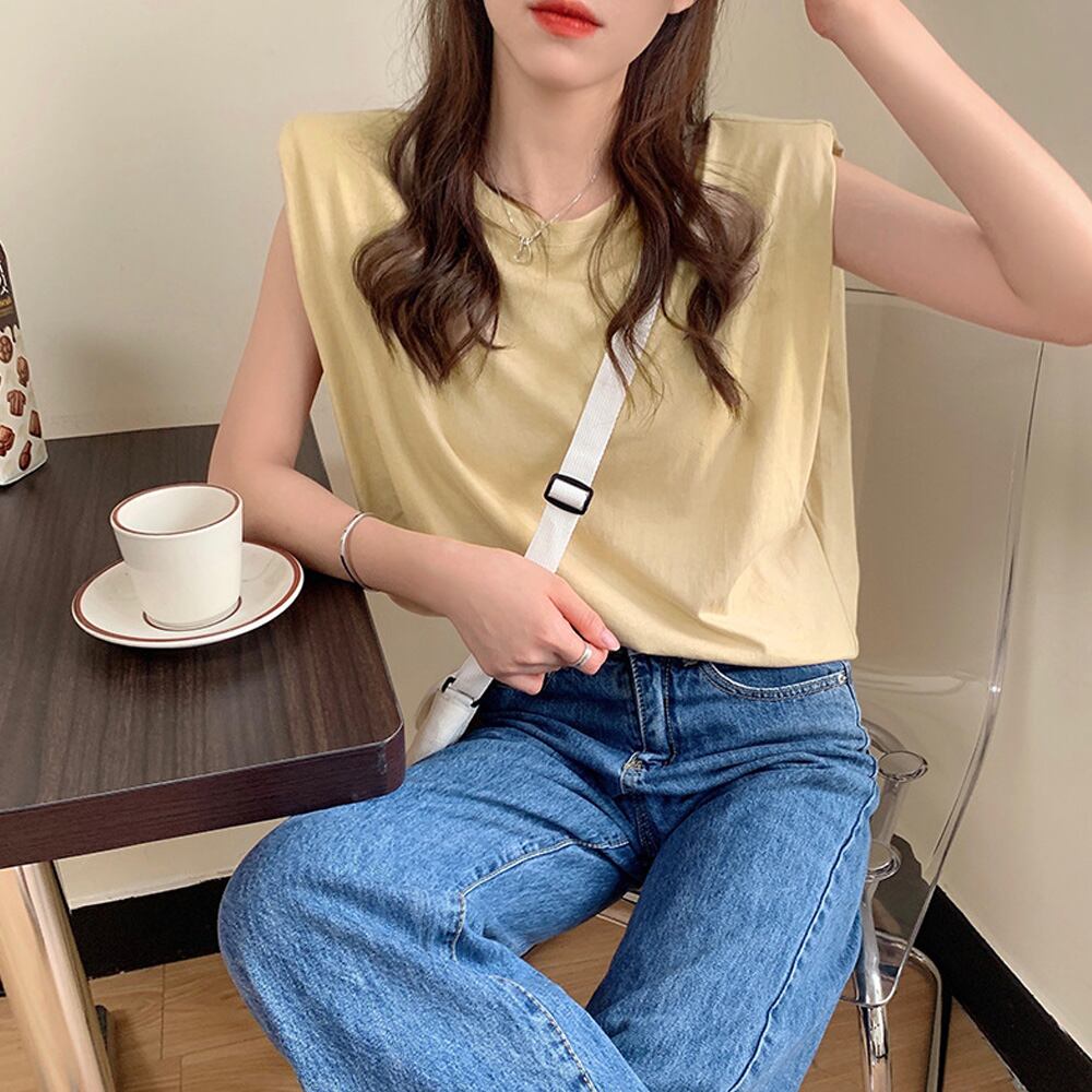 トップス 無地 ノースリーブ シンプル Tシャツ ゆったり 体型カバー 韓国ファッション