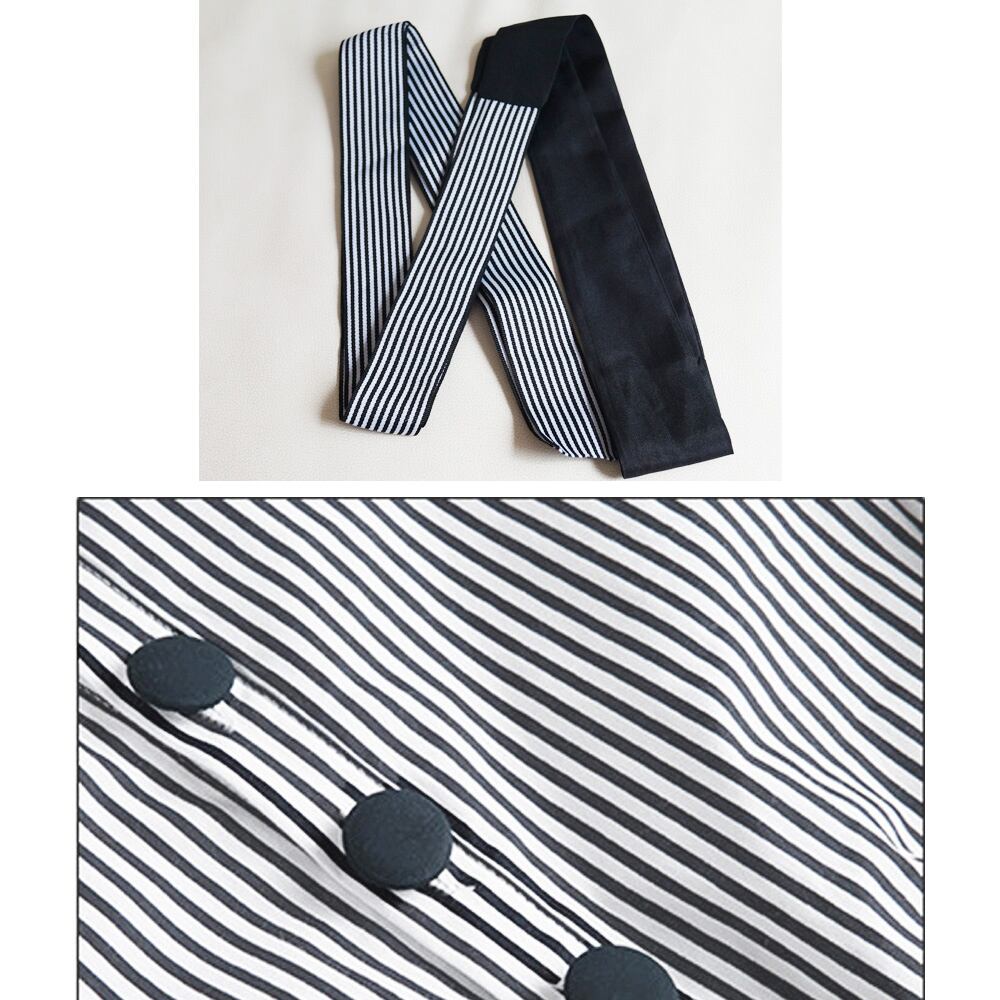 ブラウス リボン 半袖 春夏 バックシャン トップス 韓国風 バックボタン ストライプ柄シャツ 襟なし 着やせ Vネックシャツ