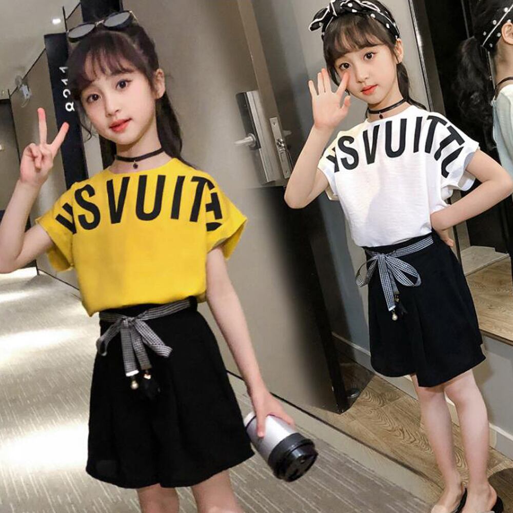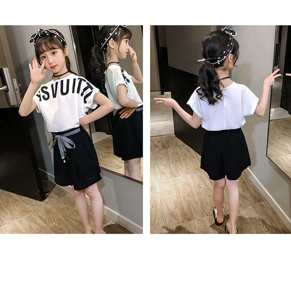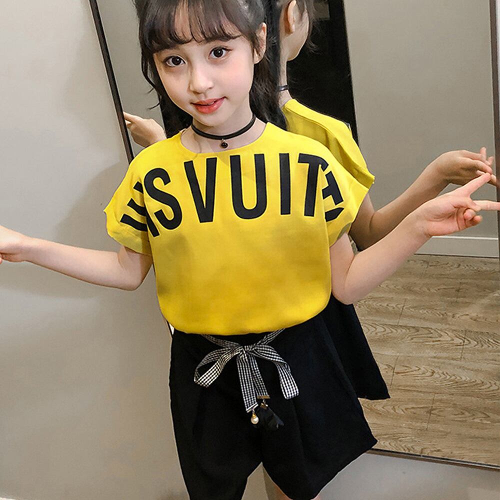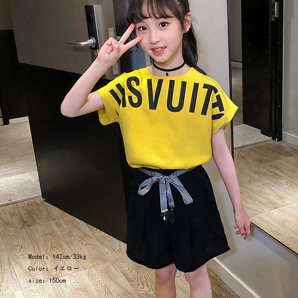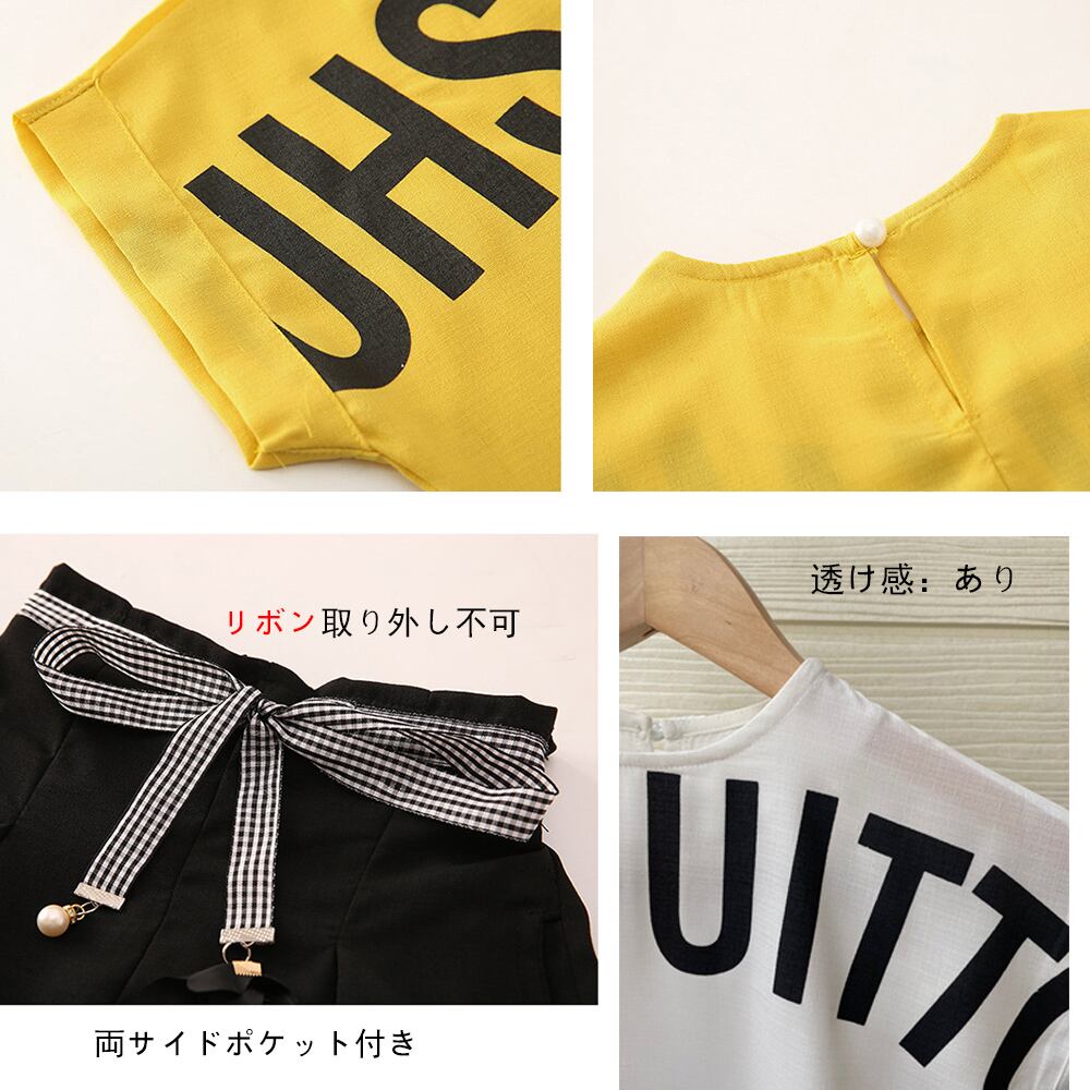 キッズ 上下セット 子供服 姉妹双子 可愛い ツーピース 女の子 夏 ショートパンツ 3色 ジュニア服 通学着 短パンツ 小学生 英字柄 リボン