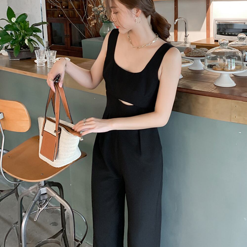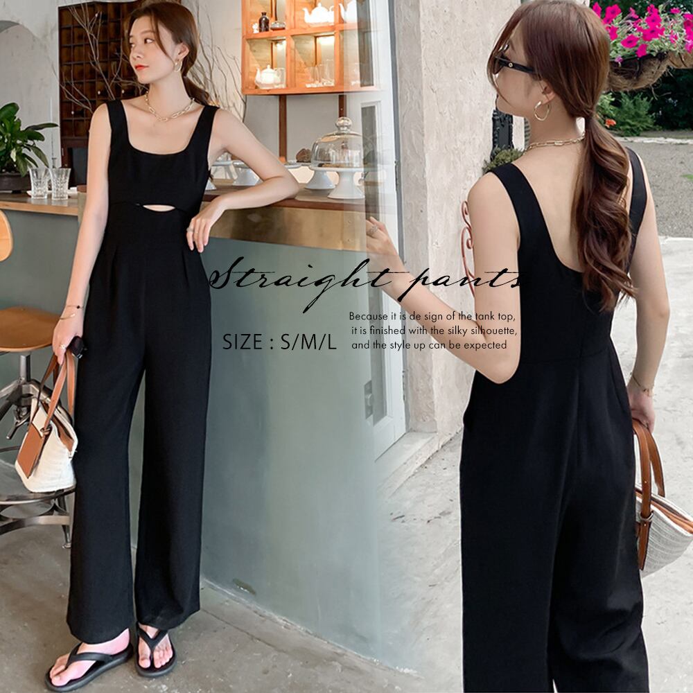 オーバーオール オールインワン ハイウエスト ロング丈 タンクトップサロペット 大人可愛い バギーパンツ 春夏 肩見せ セクシー ストレートパンツ