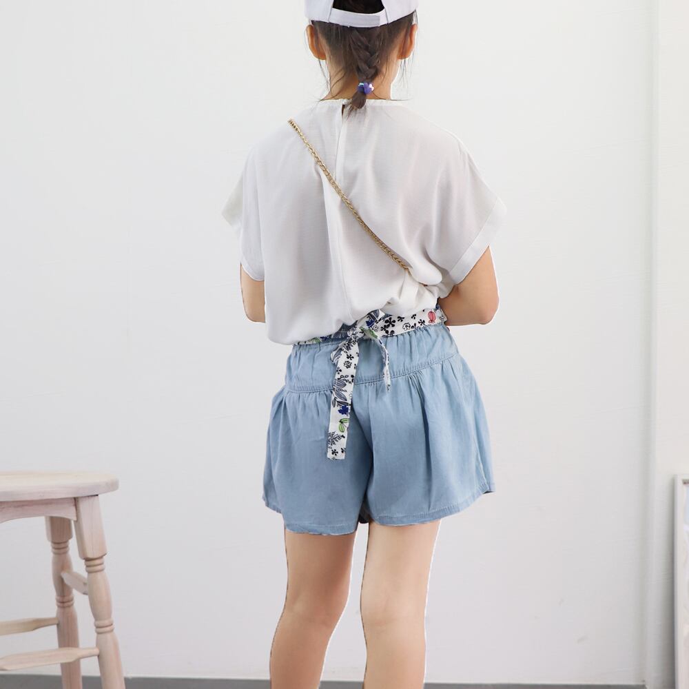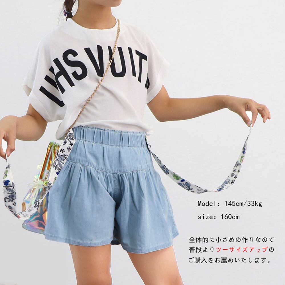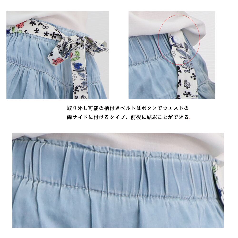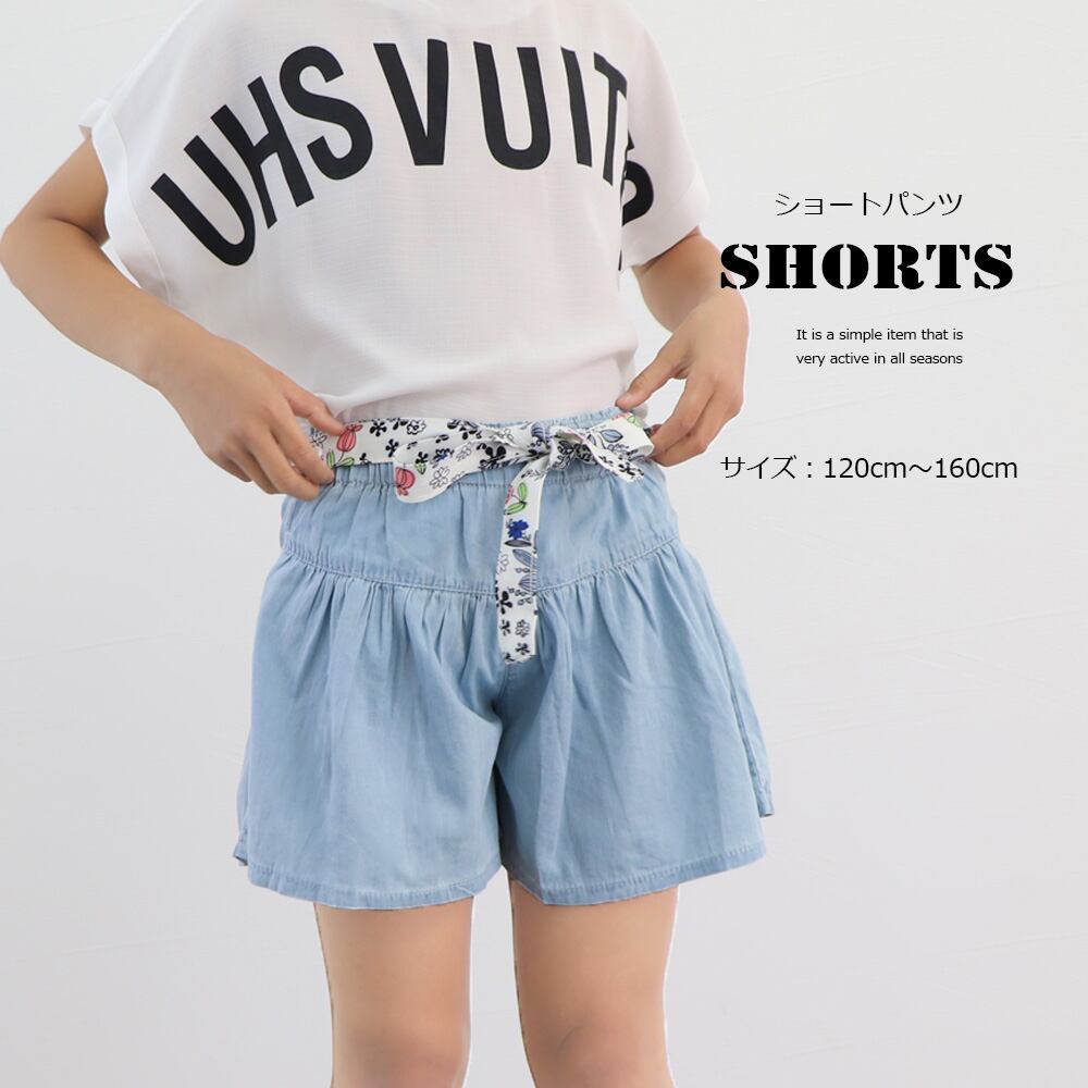 キッズ ジュニア 女の子 スカート風 デニム短パン 柄付きベルト 子ども服 可愛い 薄手 薄い 春 秋 通学着子供ジーパン 姉妹お揃いボトムス