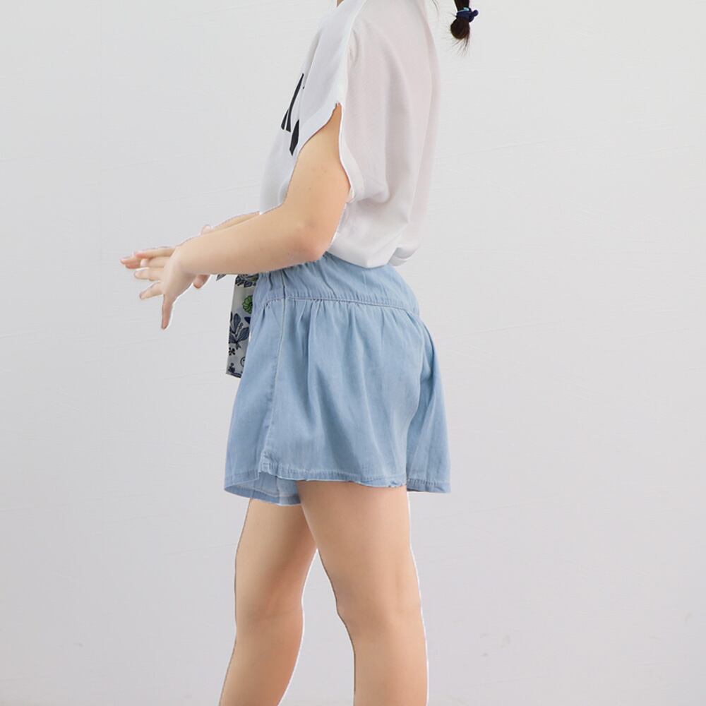 スカートに見えるガーリースタイルのキュロットデニムショートパンツ。