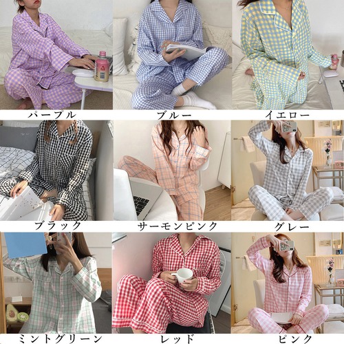 パジャマ ギンガムチェック 2点セット 可愛い 部屋着 セットアップ ナイトウェア リラックス