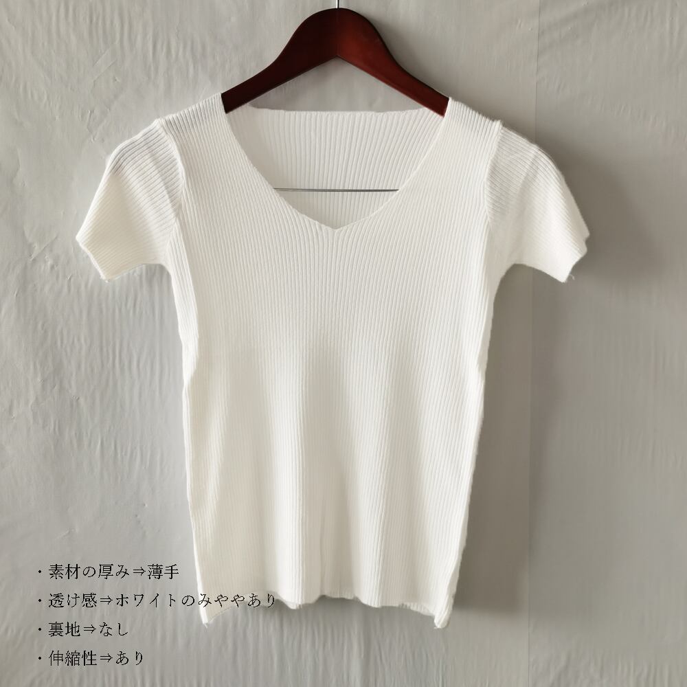 【日本倉庫即納】 リブ タイトニット Vネック きれいめ