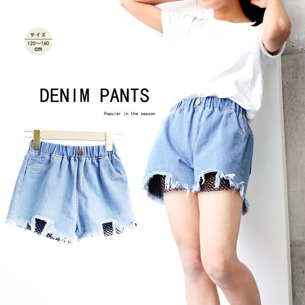 【日本倉庫即納】 キッズ ダメージ デニムショートパンツ