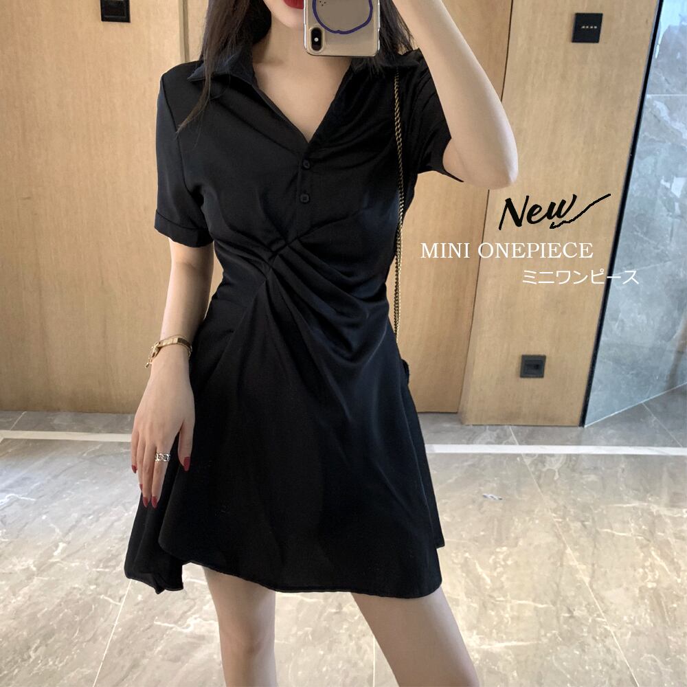 ショートワンピース デコルテ見せワンピ きれいめ 薄手