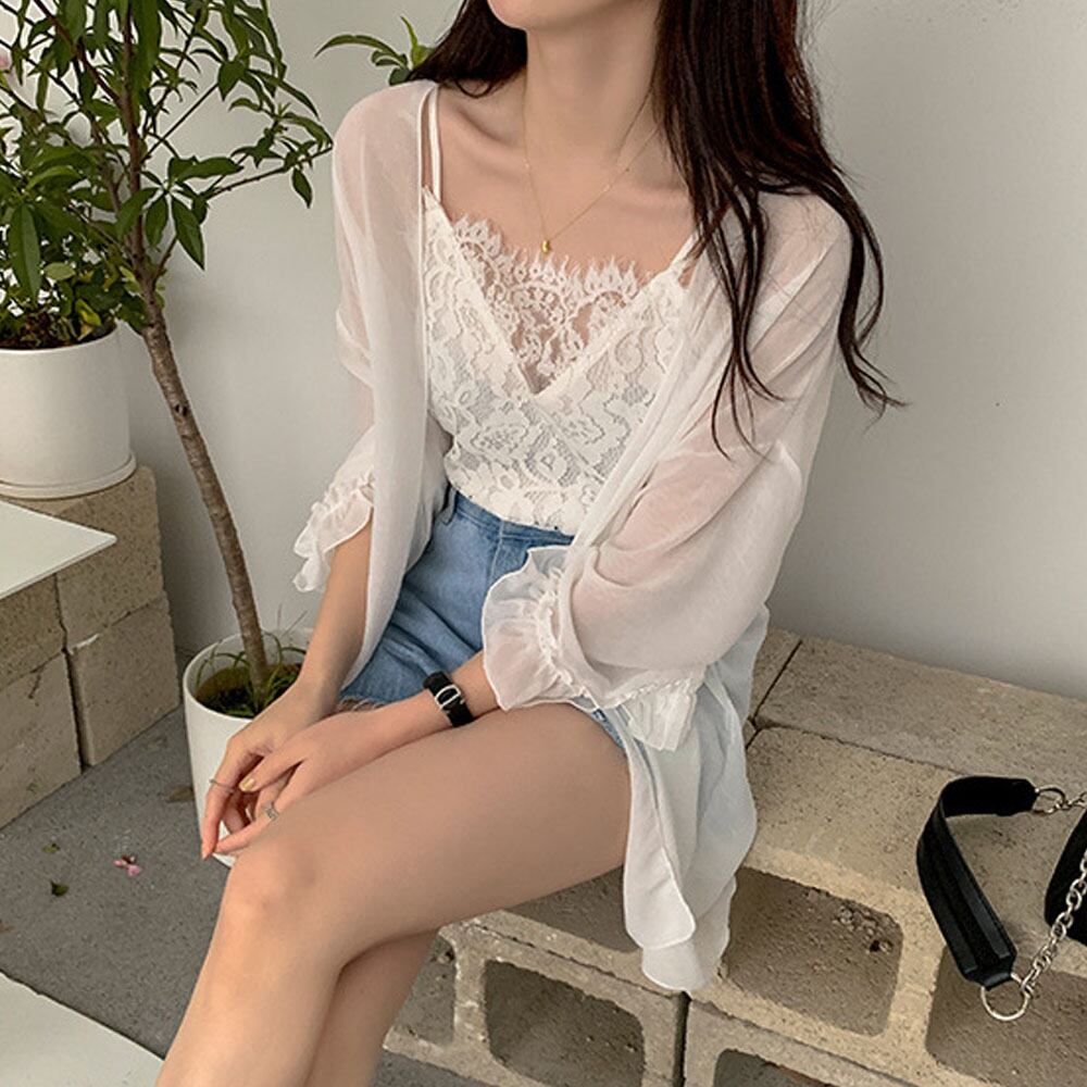 シフォン トップス 韓国風 ゆったり 日焼け防止 シンプル アウター 紫外線対策 春夏 カーディガン 薄手 羽織 無地 アウター