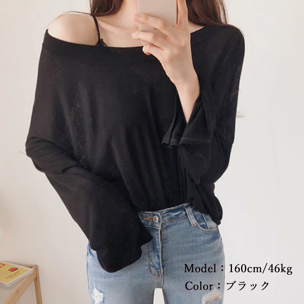 【日本倉庫即納】 オフショルダー トップス 袖スリット ゆったり 体型カバー 長袖 お洒落