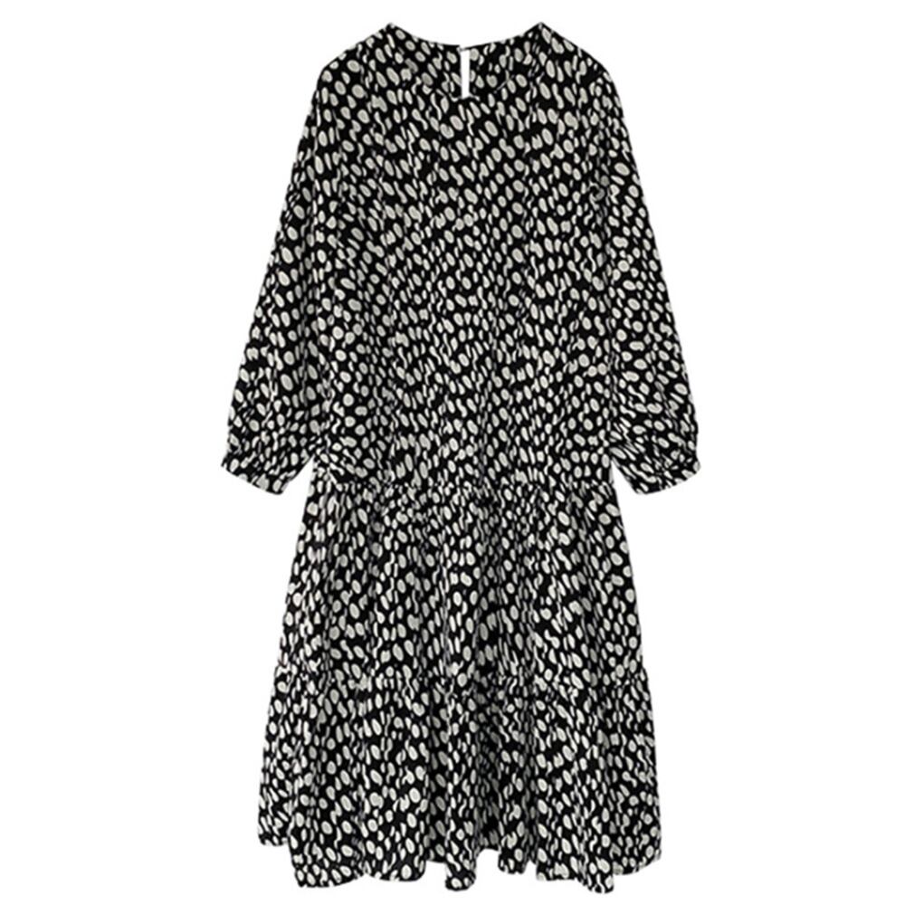 【日本倉庫即納】 ワンピース ドット柄 シフォンワンピース レディース ロングワンピース 長袖