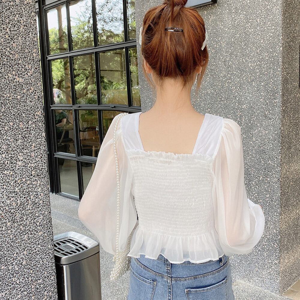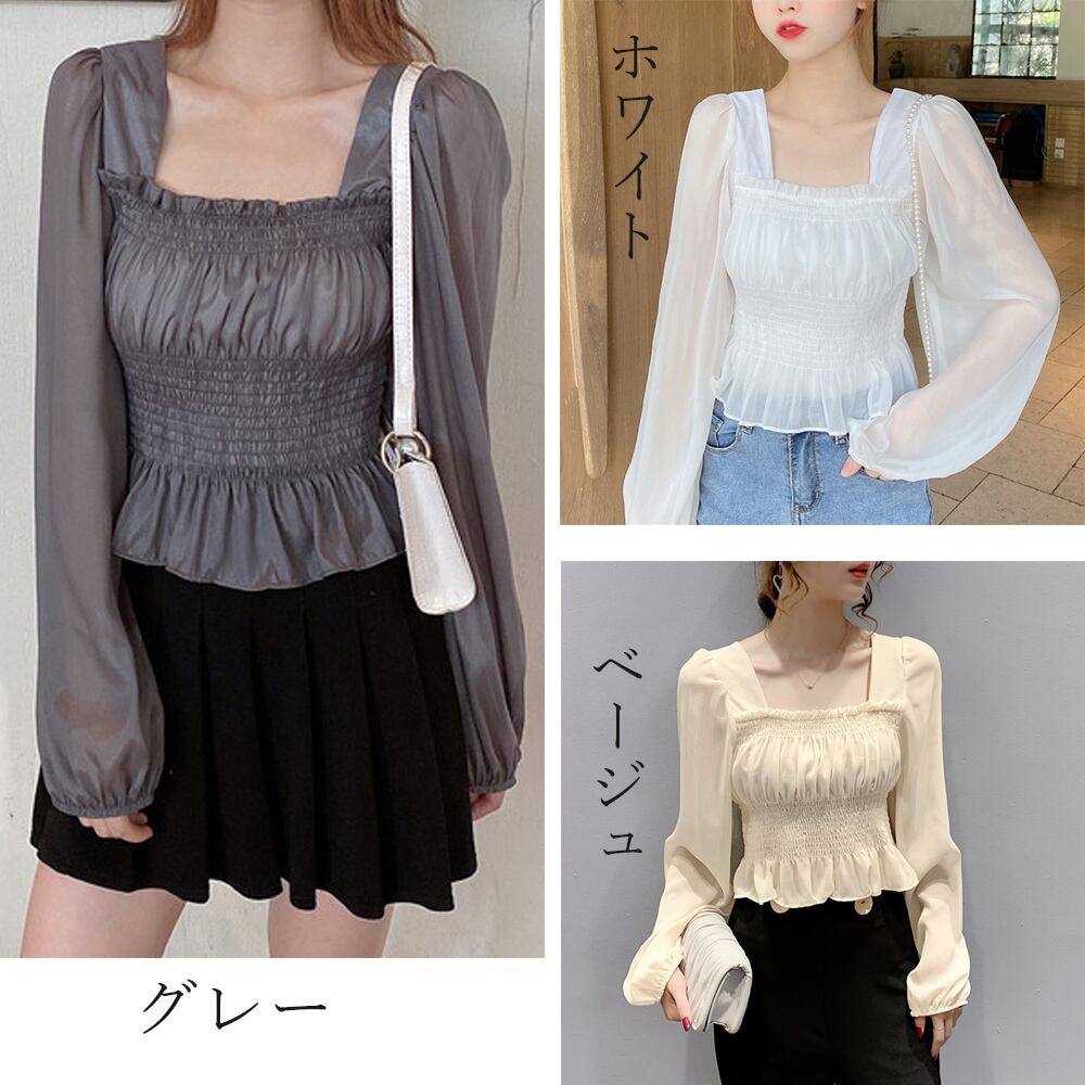【日本倉庫即納】 シフォンブラウス チューブトップ付き パフスリーブ 長袖ブラウス