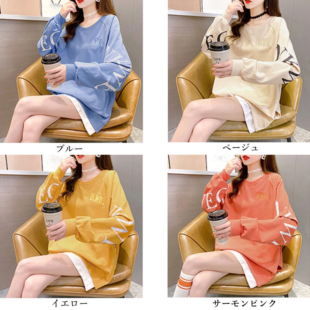 【日本倉庫即納】 チュニックロンT 長袖 レディース レイヤード風 スウェット ゆったり