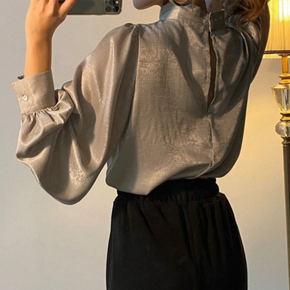 【日本倉庫即納】 ブラウス レディース パフスリーブ トップス 立ち襟 オフィス シャツブラウス