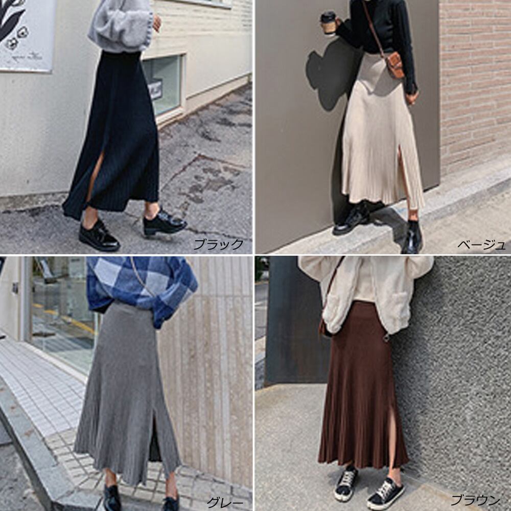 【日本倉庫即納】 ニットスカート レディース ハイウエスト フレアスカート
