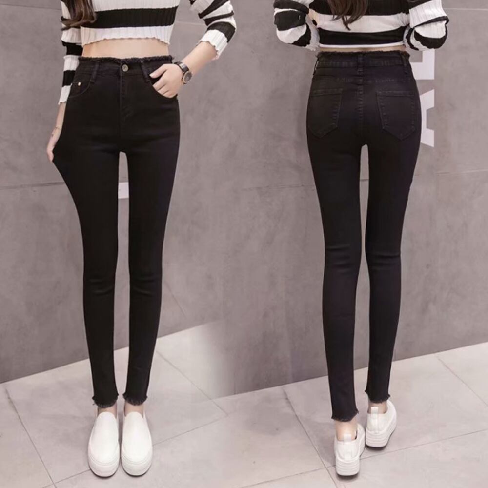 【日本倉庫即納】 デニムパンツ レディース スキニー パンツ ジーパン 無地 フリンジ 九分丈