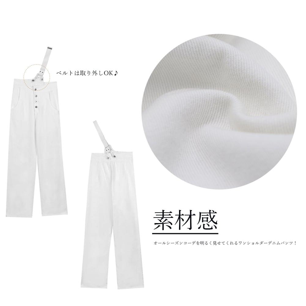 爽やかなデニムがオールシーズンコーデを明るく見せてくれるワンショルダーデニムパンツ