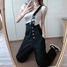サロペット 2wayデニム ハイウエスト ジーンズ オールインワン 着やせ 韓国風 美脚 オーバーオール 大人カジュアル