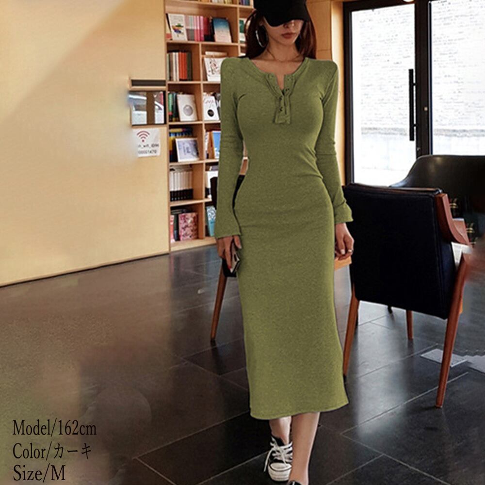 【日本倉庫即納】 ニットワンピース 秋冬 レディース リブニット ロングタイトワンピース