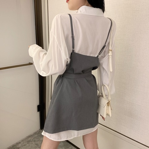 アシンメトリーなキャミソール+シャツワンピース2点セット