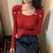 顔周りをすっきり見せてくれるスクエアネックタイプのリブニットトップス