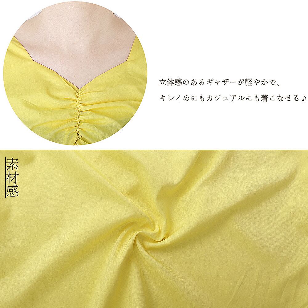 立体感のあるギャザーが軽やかで、キレイめにもカジュアルにも着こなせる