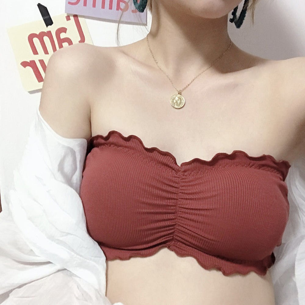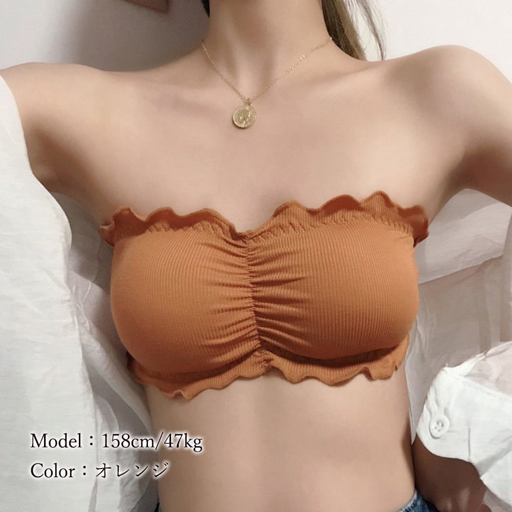 ギャザー チューブトップブラ ノンワイヤー オフショルダー ブラトップ カップ付き ストラップレス リブベアトップ