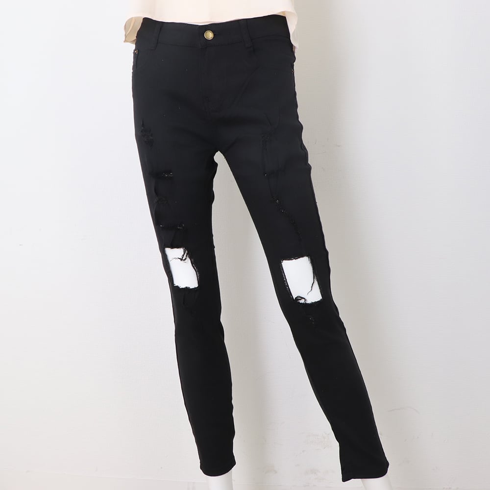 【日本倉庫即納】 デニム スキニー レディース デニムパンツ ダメージ入り ジーンズ
