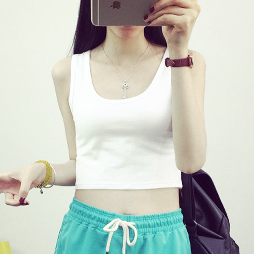 【日本倉庫即納】 Uネック ショート丈 タンクトップ レディース 春夏 ノースリーブ トップス