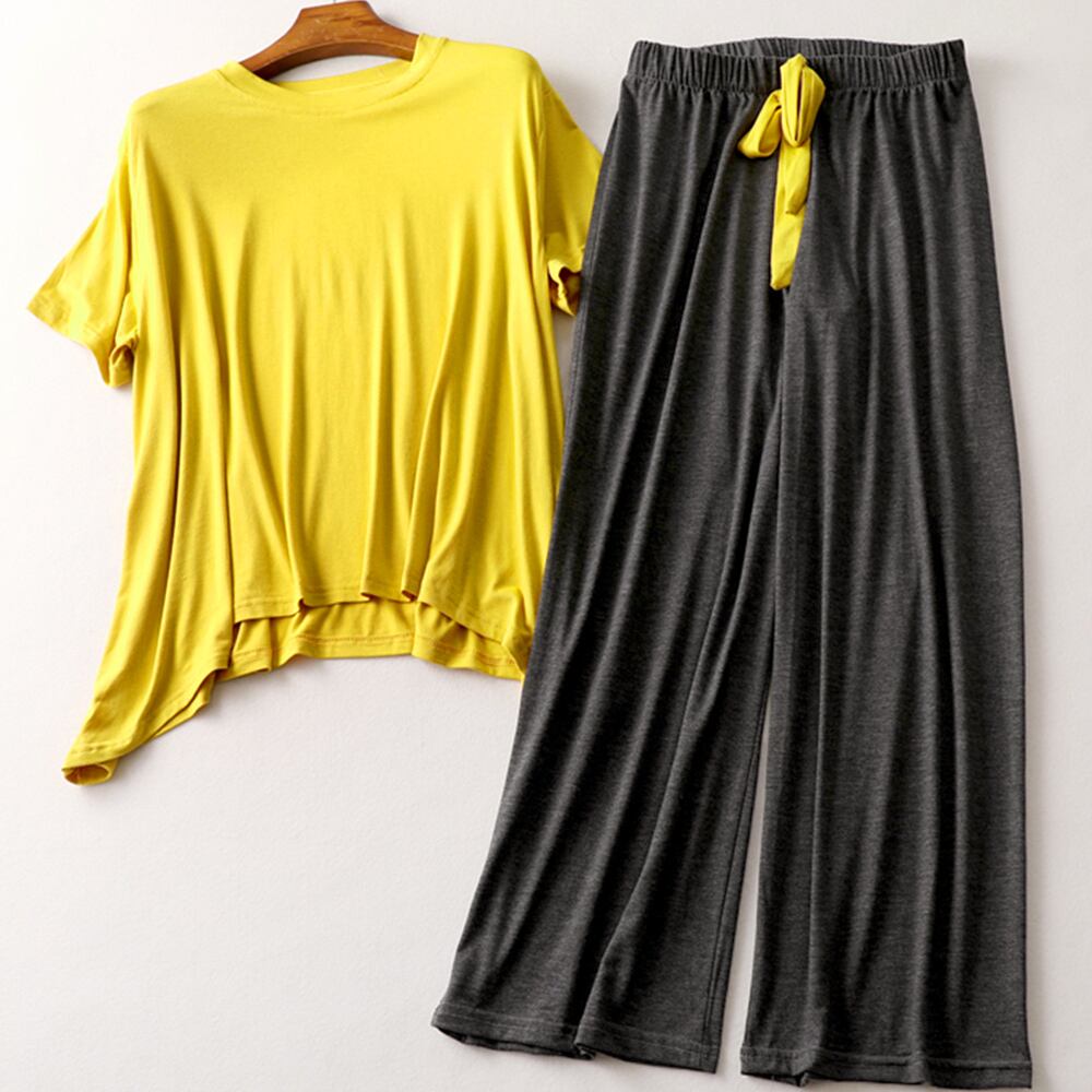 ロングパンツと半袖トップスのルームウェア2点セットです