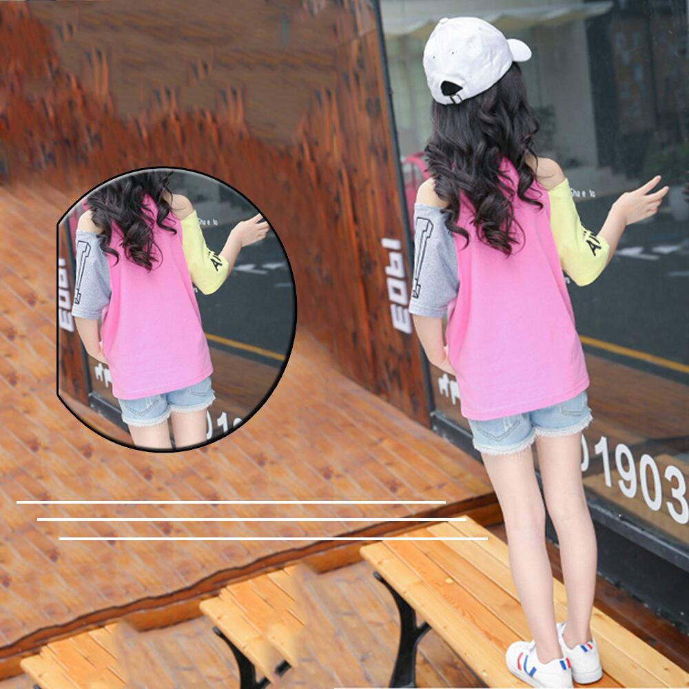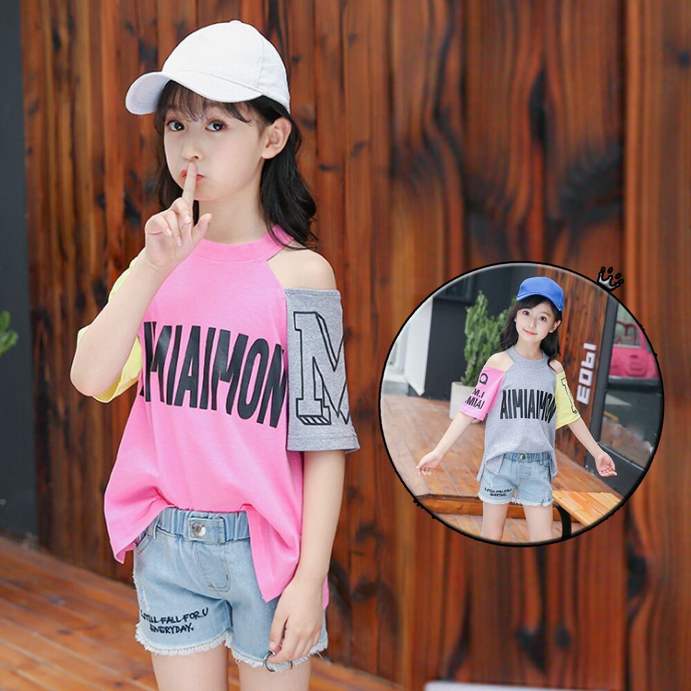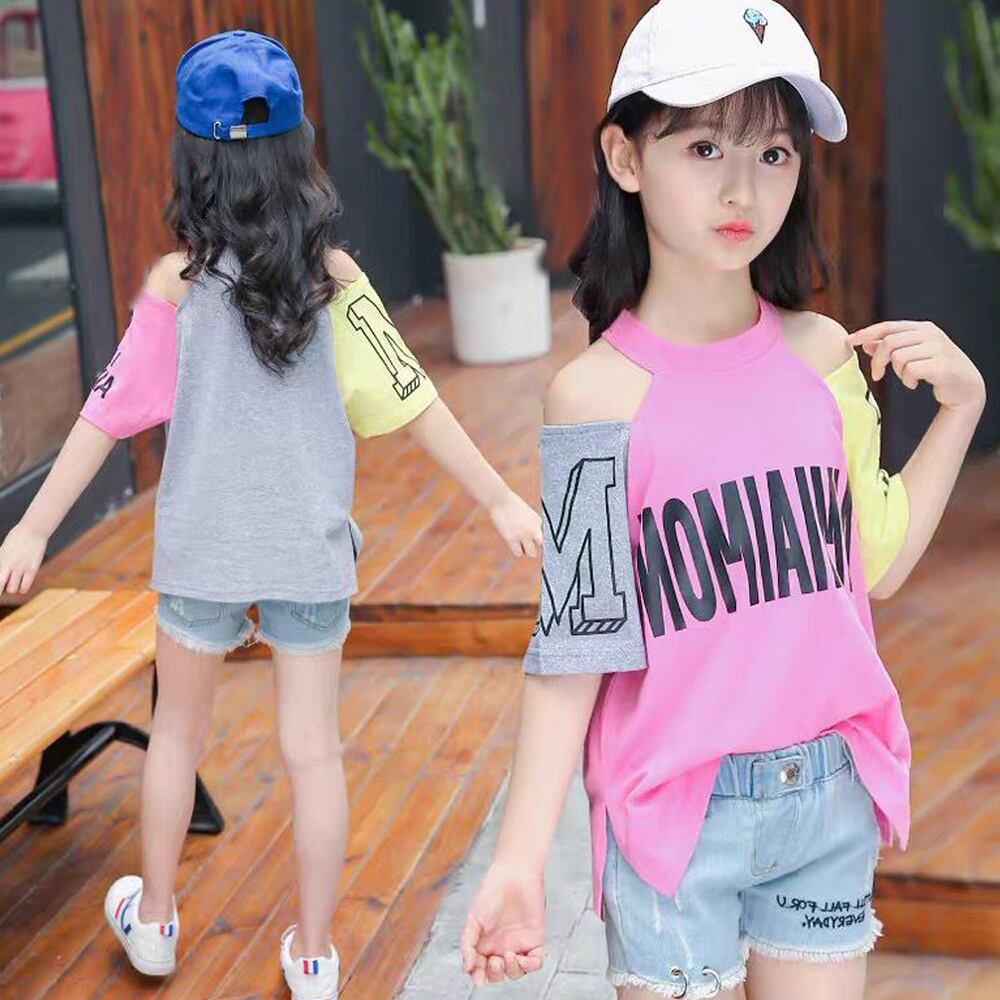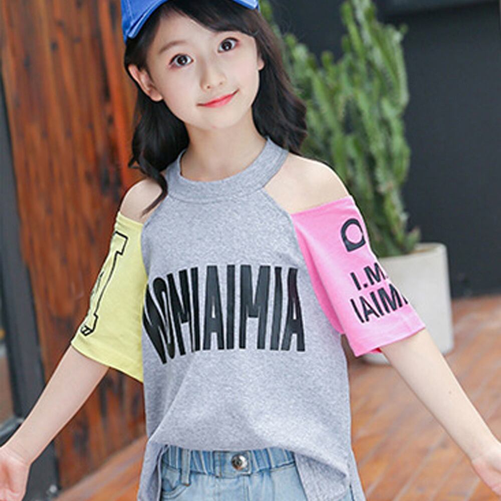 女の子おしゃれ肩開きデザインTシャツ