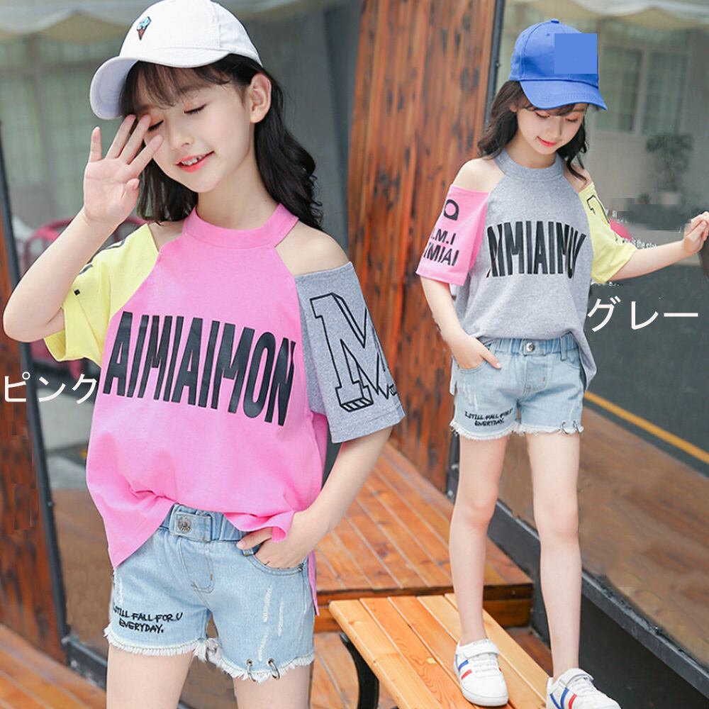 【日本倉庫即納】 子供服 半袖tシャツ キッズ 女の子 英字柄 ドッキング おしゃれ カジュアル