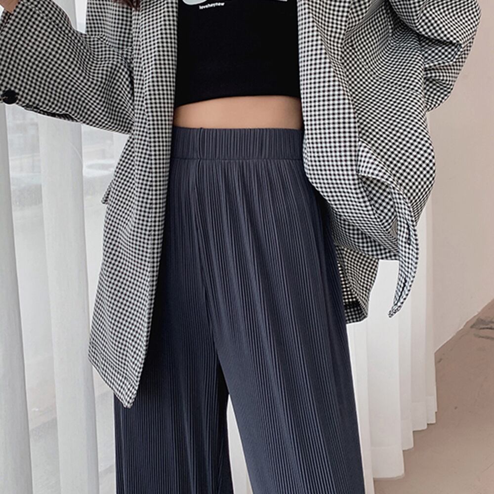 【日本倉庫即納】 プリーツパンツ レディース ワイドパンツ ハイウエスト ストレートパンツ