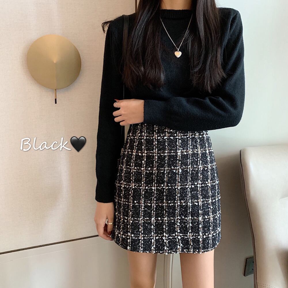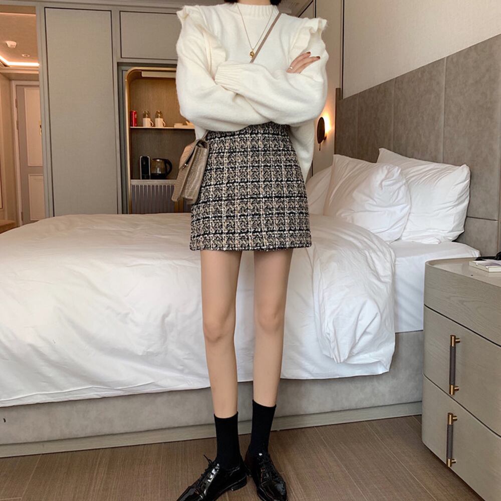 厚みあるツイード生地でレトロらしいおしゃれ感を演出するミニスカート