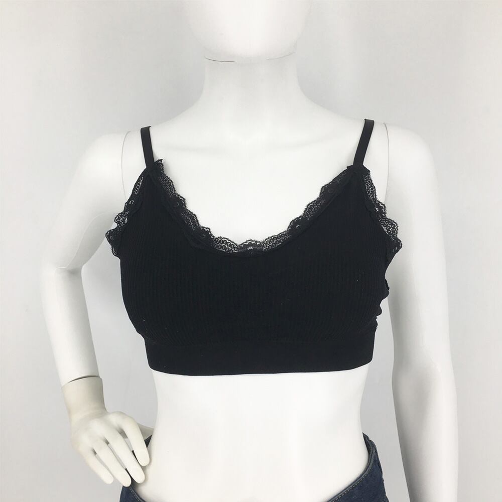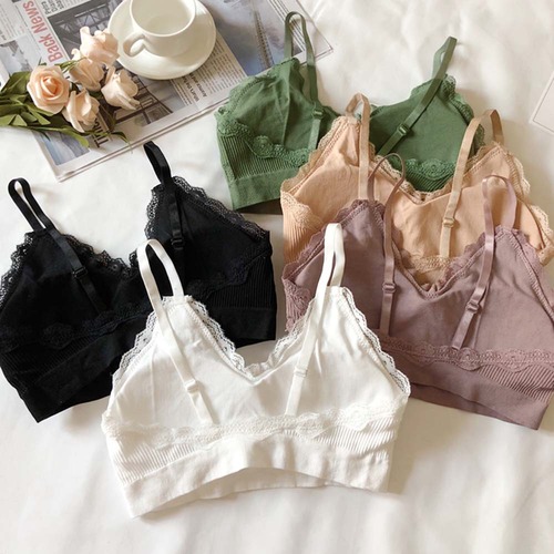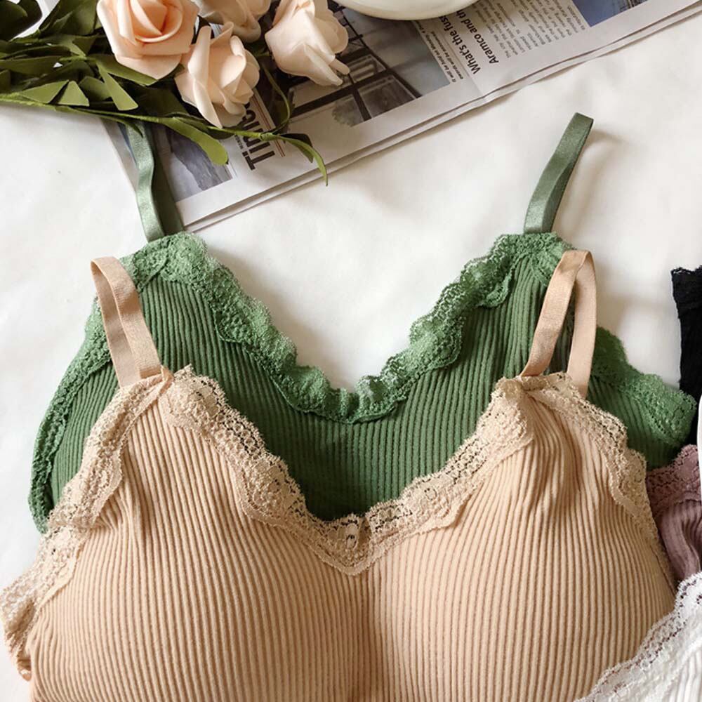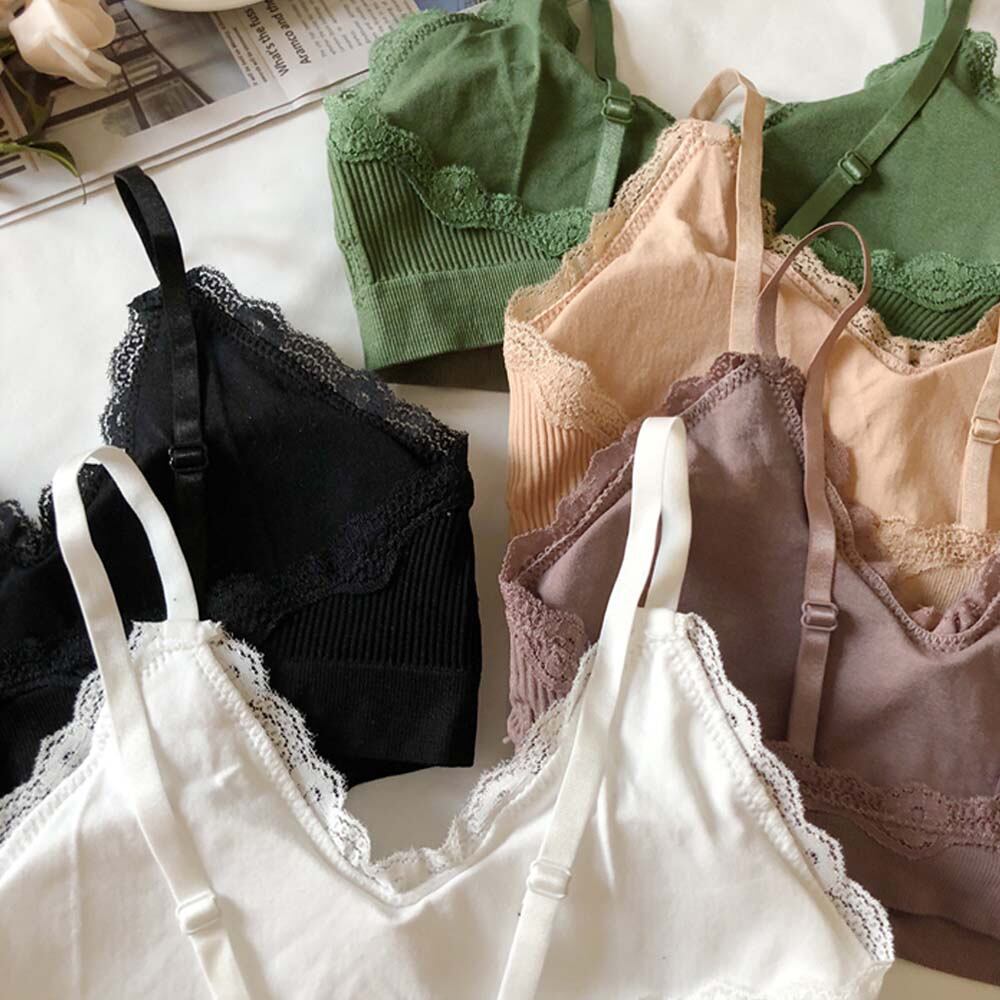 レディース パッド付き ノンワイヤー キャミブラ レースインナー リブベアトップ ストレスフリー