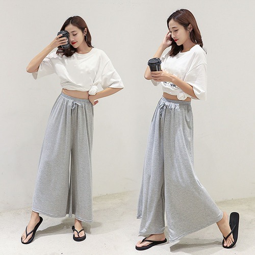 足の形を拾わないゆったりめのスカーチョシルエット、癖になるふわっと軽やかな心地良さ、カジュアルながらも上品な着こなしができるおすすめアイテム