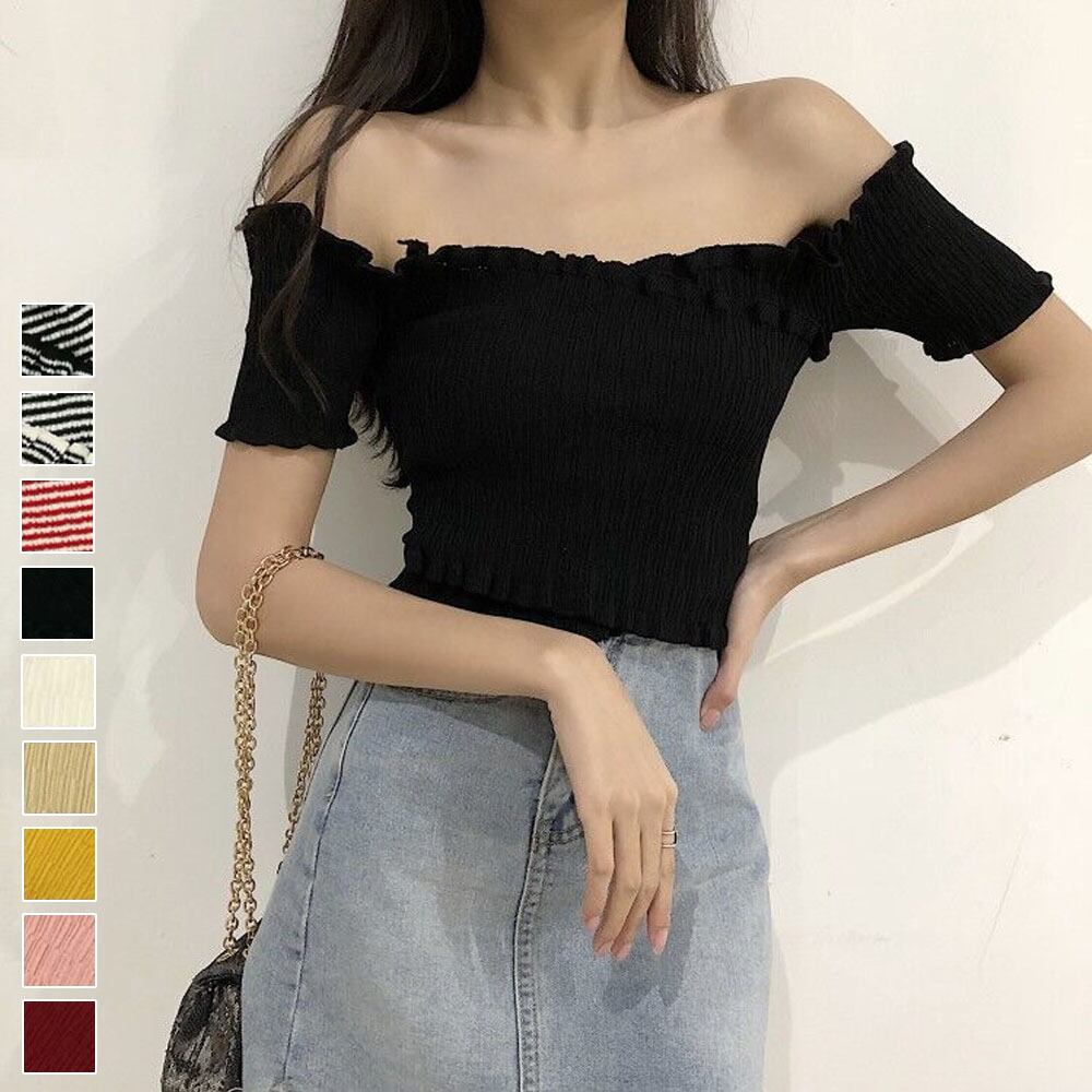 【日本倉庫即納】 サマーニット レディース オフショルダー 肩だし トップス オフショル フリル