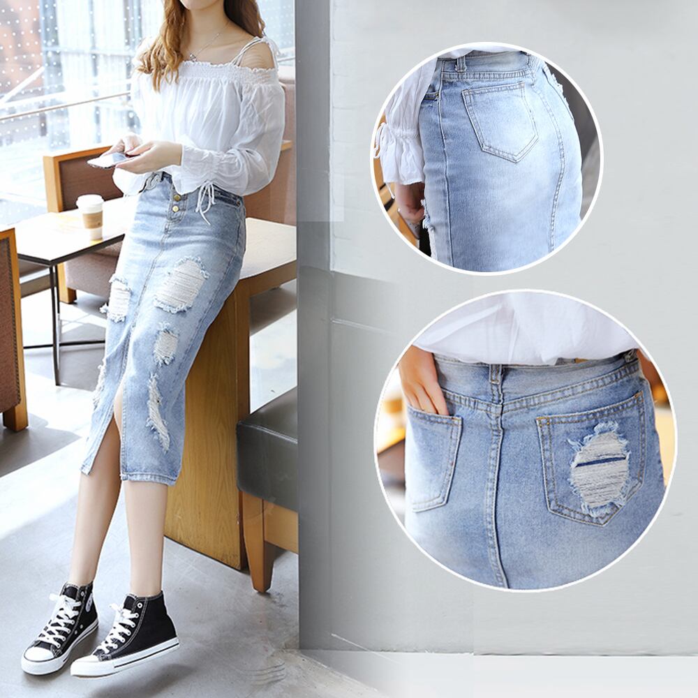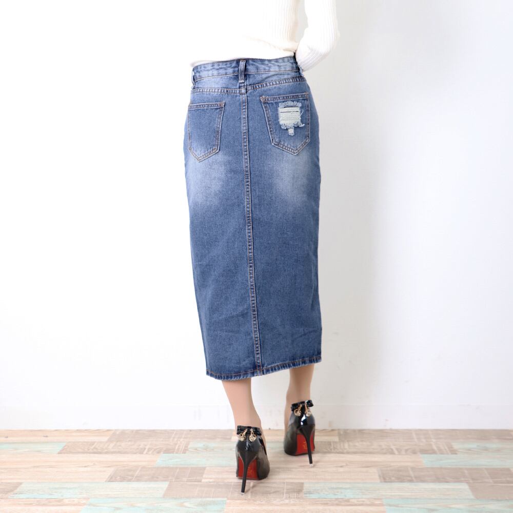 【日本倉庫即納】 ダメージ デニムスカート レディース スリット クラッシュ デニム