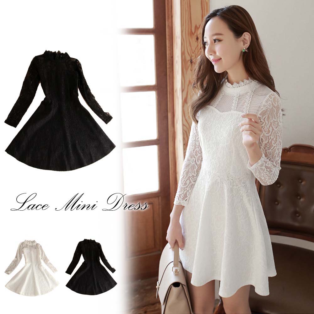 美麗なボディラインを強調するフェミニンなミニ丈レースワンピース
